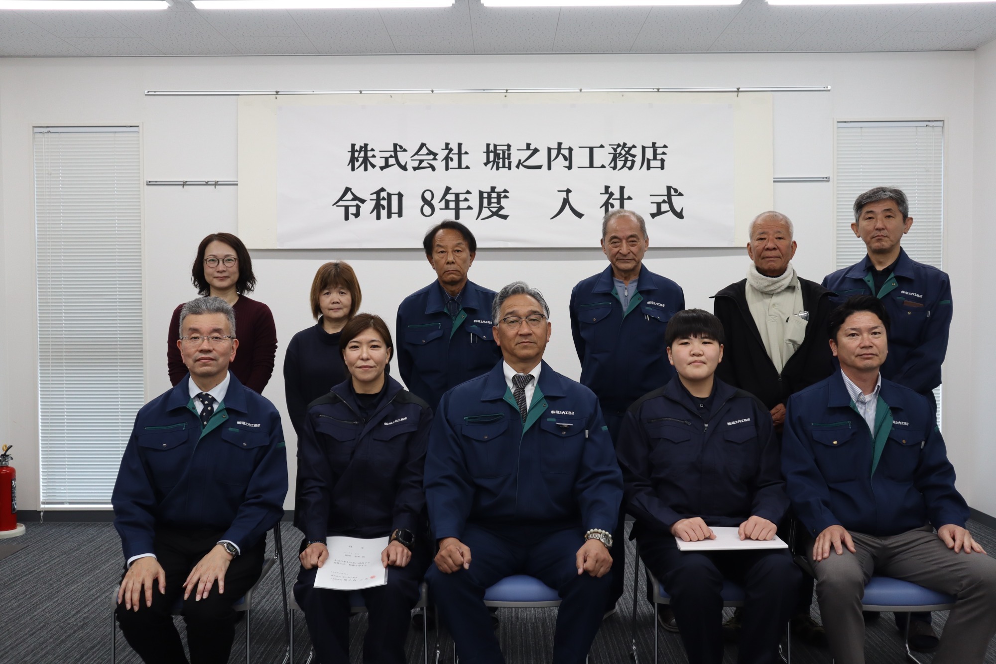 令和8年度、新たなる門出を迎えた新入社員1名、経験者採用1名です。皆さん、宜しくお願い致します。新社会人として、全員で応援していきましょう。入社してからは今年も種子田課長が講師で新人育成カリキュラム(座学や実技を取り入れ講習)を行います。現場デビューはもう少し先になりますが、顔を合わせる機会があったら声を掛けてください。宜しくお願いします。